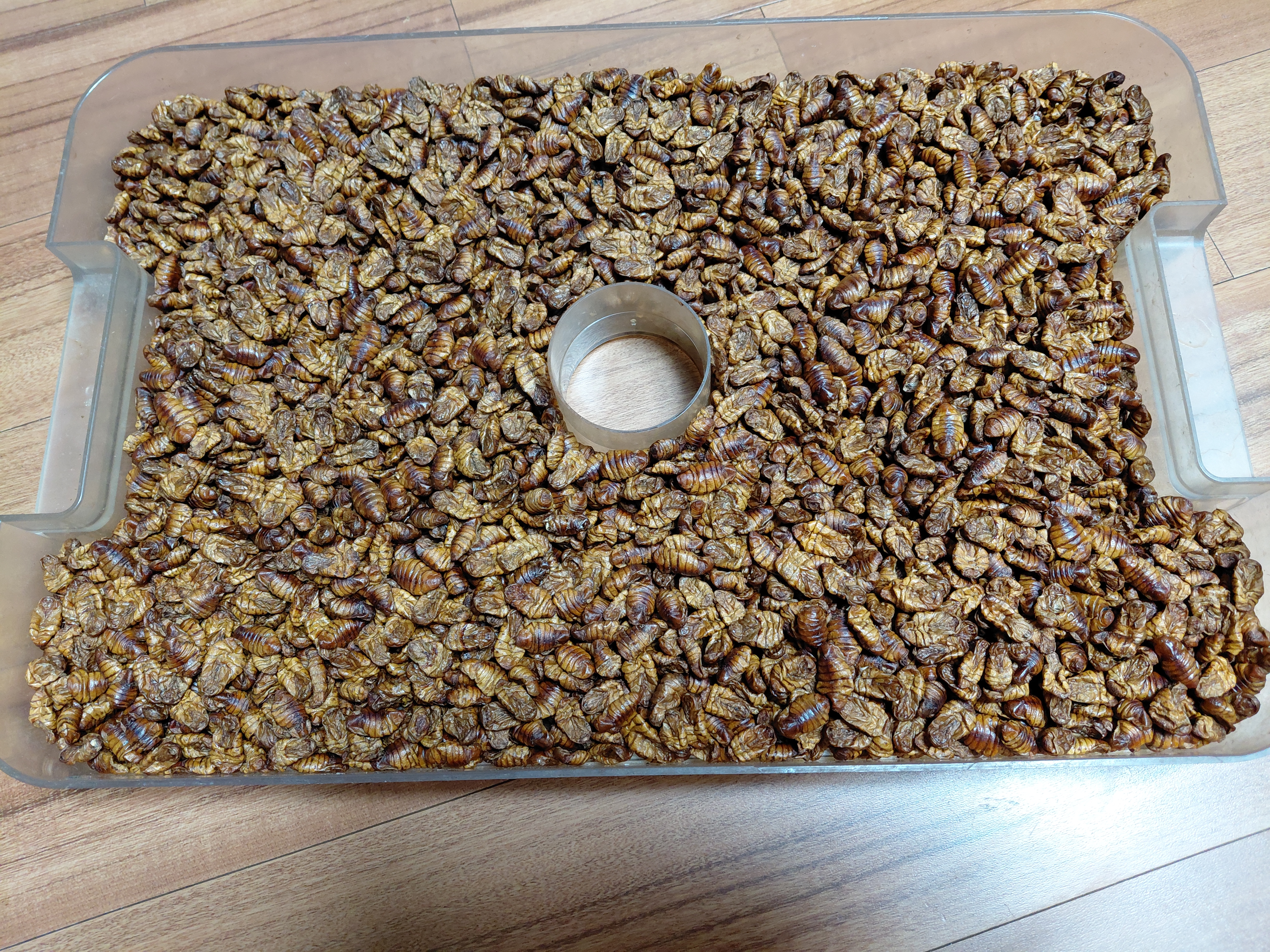 집에 와서 번데기를 소금 푼 물에 몇번을 씻어서 건져서 채반에 받쳐서 물기를 빼고 삼바리 앉히고 물기를 뺀 번데기를 올리고 맛소금 조금 끼얹어서 뜨거운 김으로 30분 정도 쪘습니다.